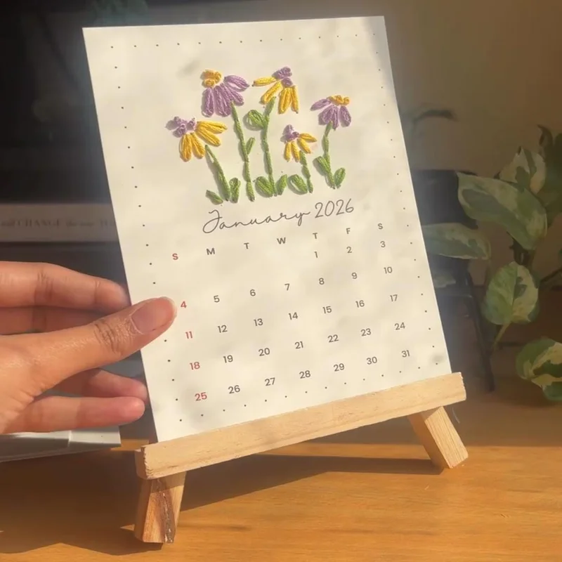 Handcrafted Paper Embroidered Calendar 2026